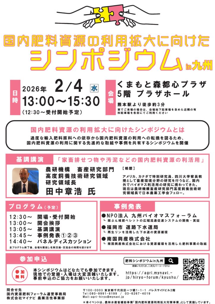 2026年2月4日にくまもと森都心プラザにて、国内肥料資源の利用拡大に向けたシンポジウムが開催されます。